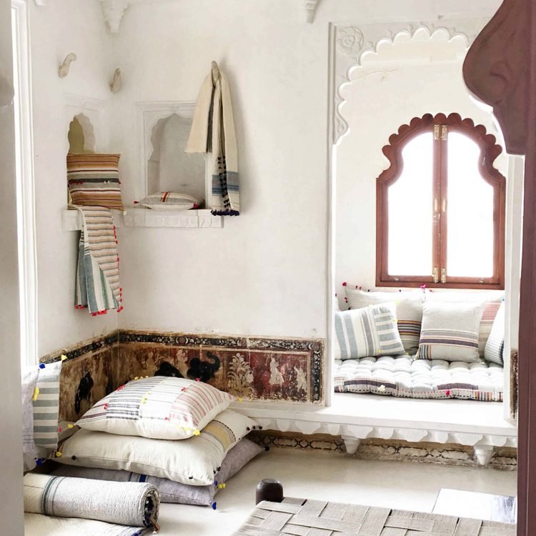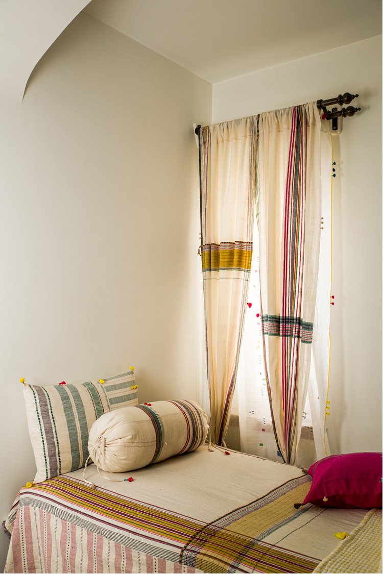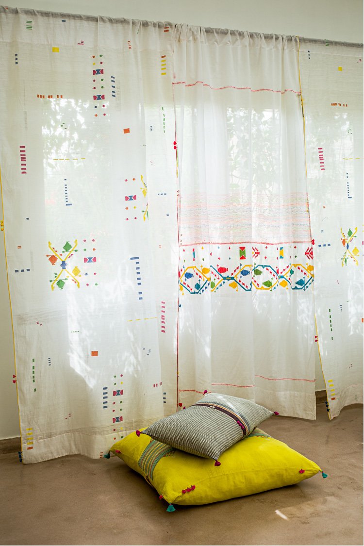 Injiri works with handloom textile techniques to develop products that could be used in interior spaces.