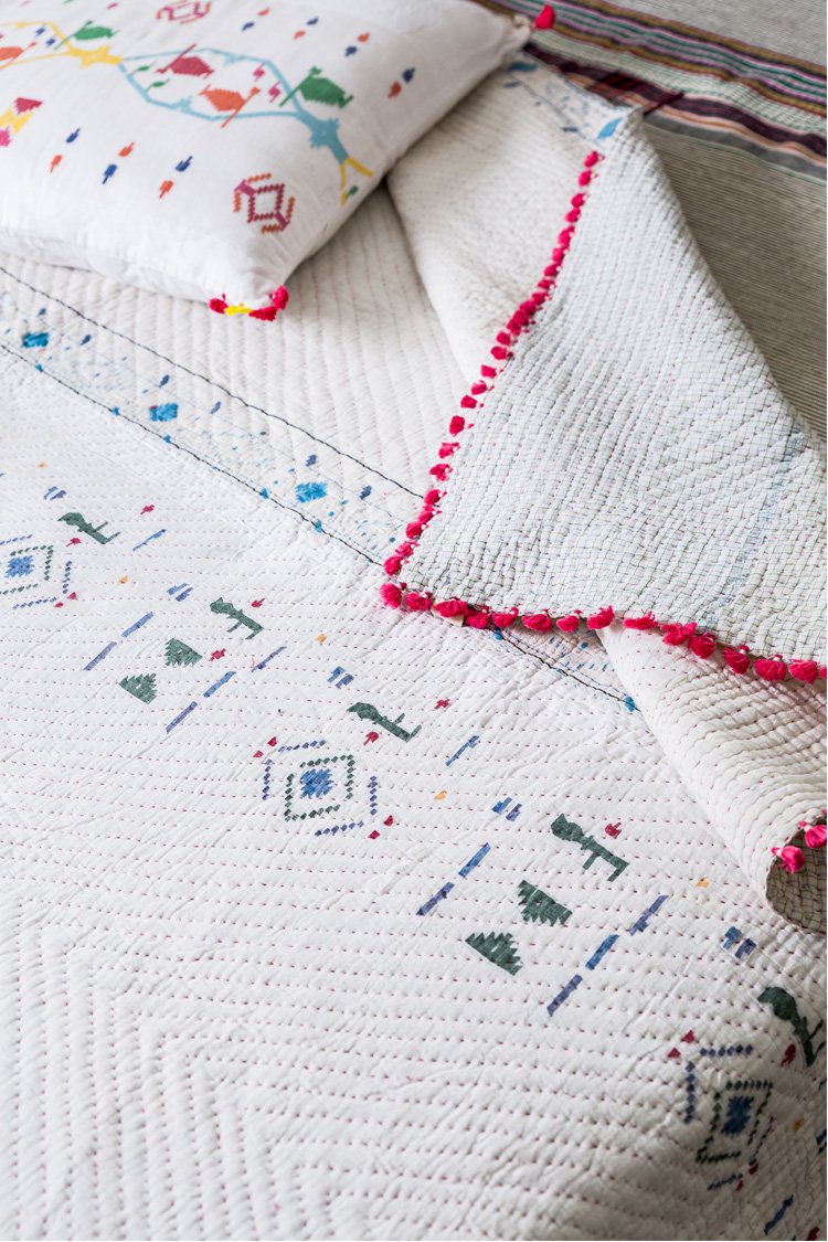 The home collection is named after the Aheer clan of Kachchh. Injiri keeps alive the confident and vibrant use of colours in its very own Ahir.