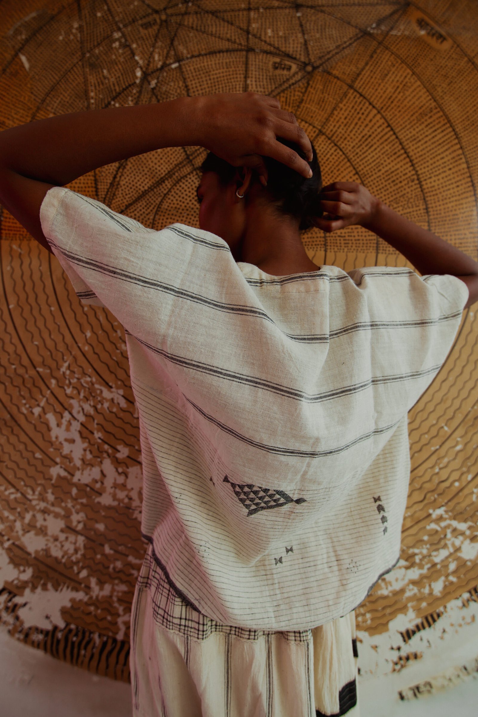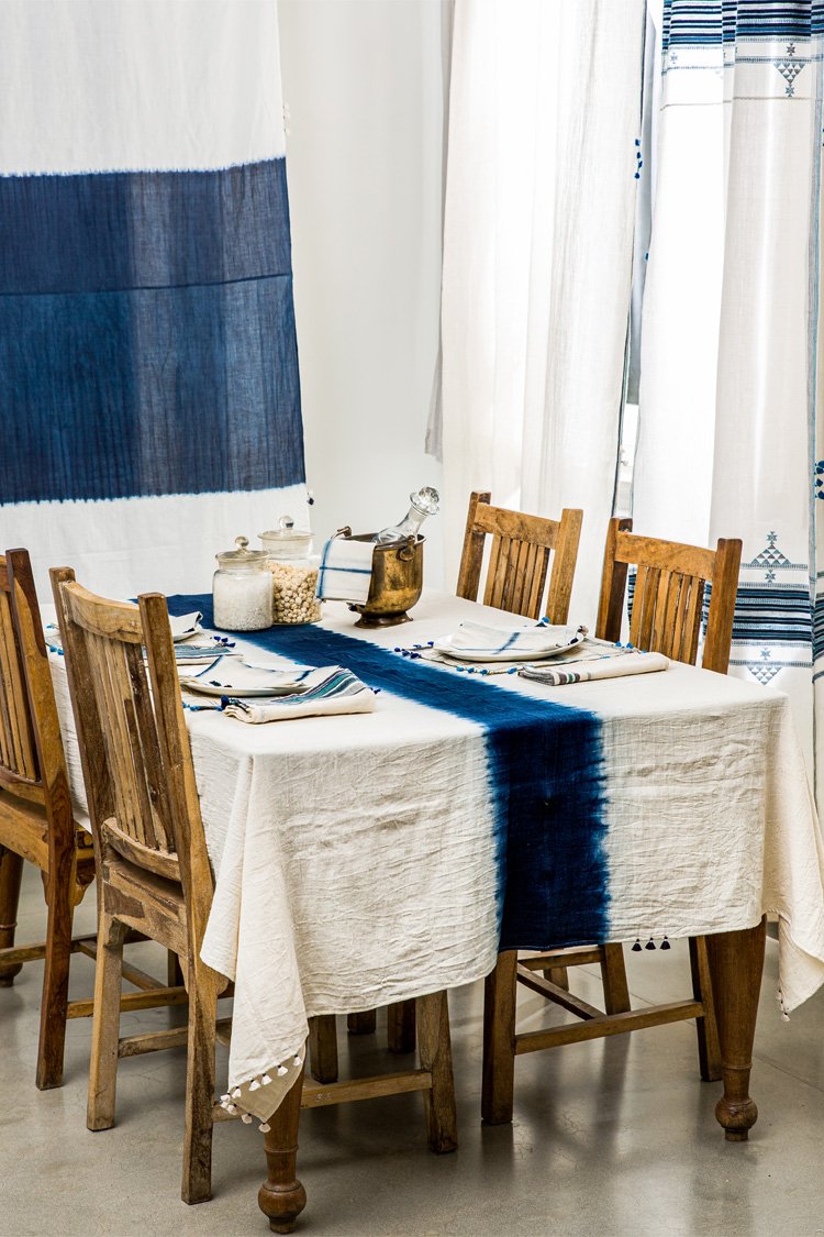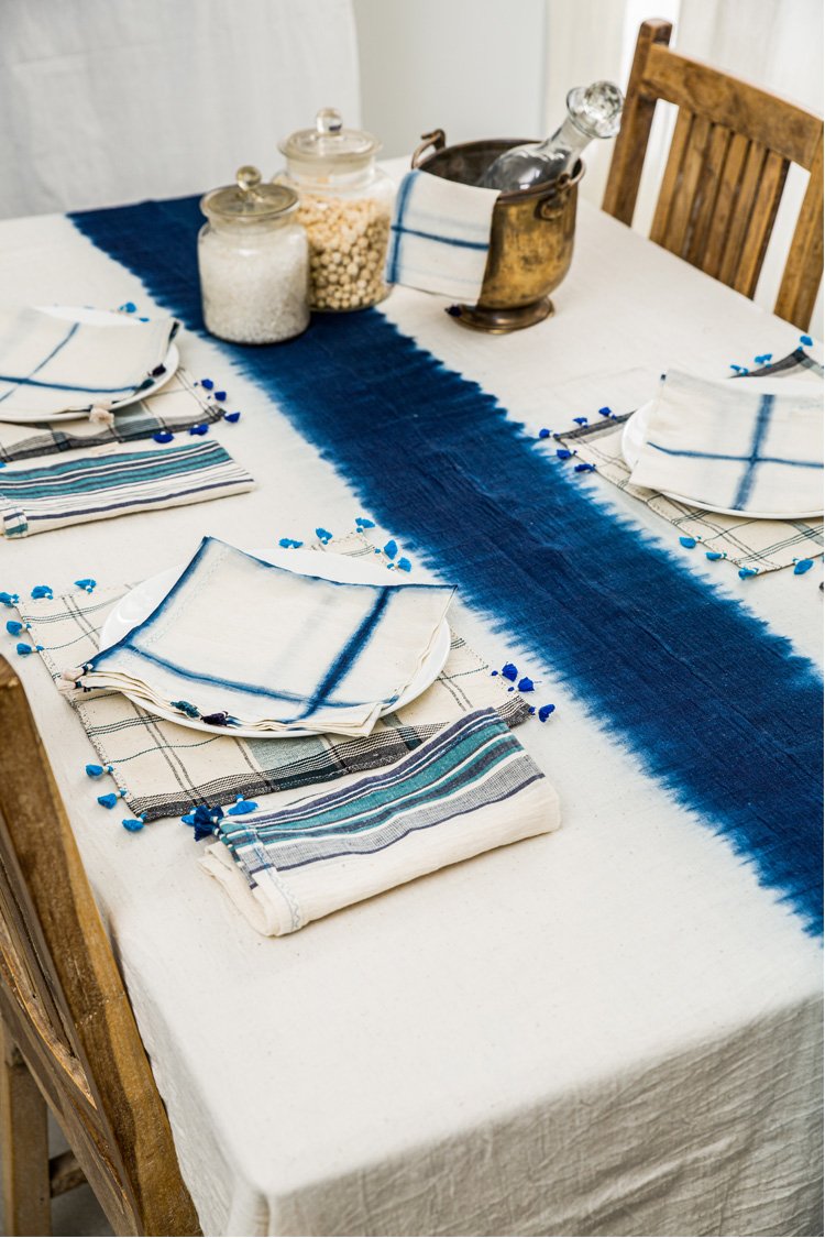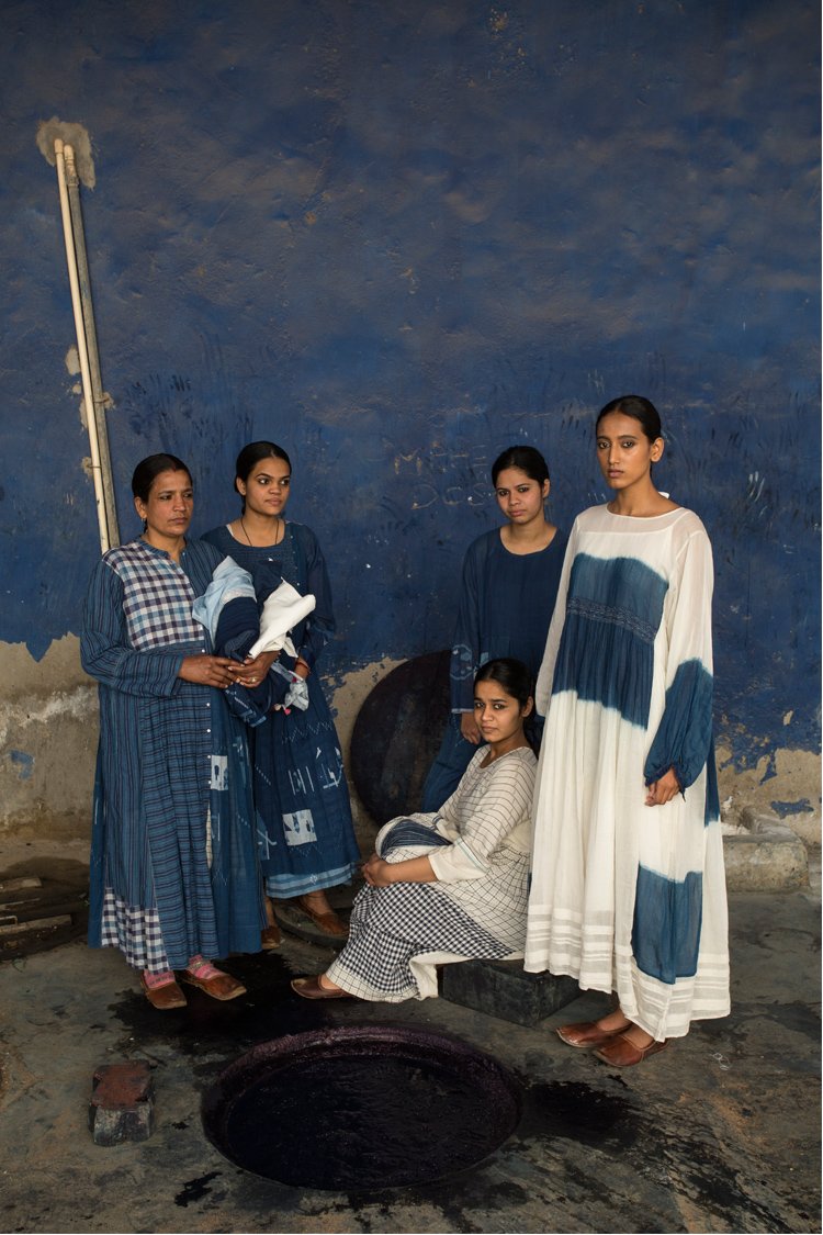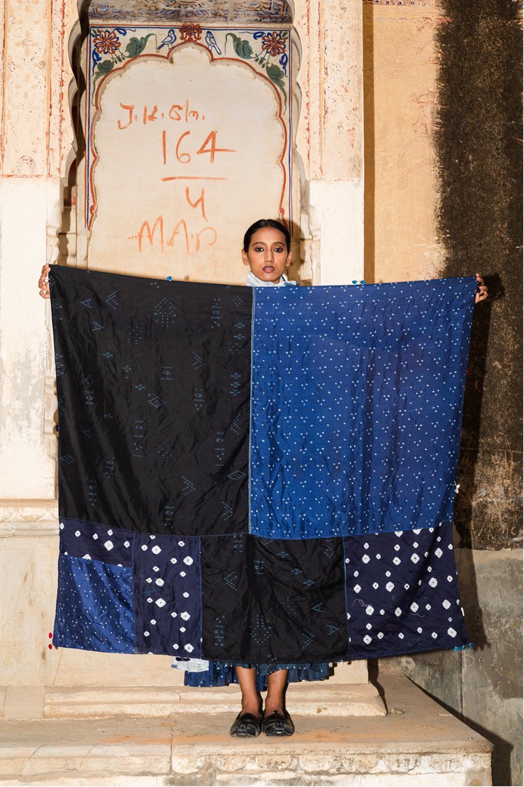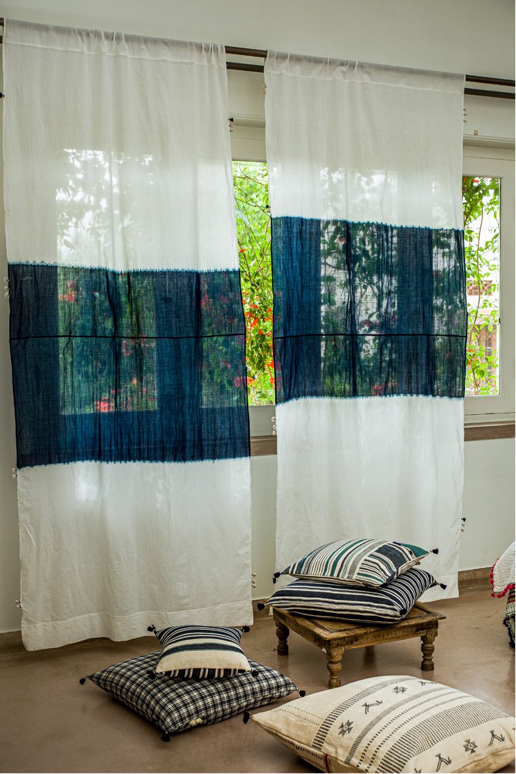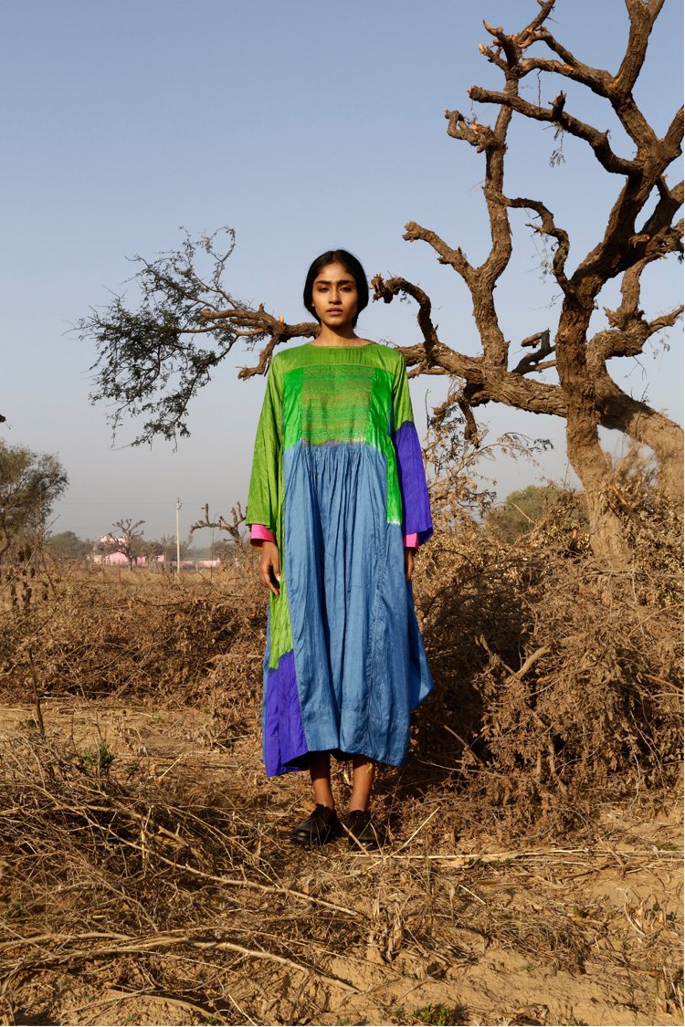 Neel is a collection developed with experiments with natural indigo over the years across various textile techniques such as Jamdani, clamp dye, extra weft. Jamdani is an old technique that Injiri is associated with and it has been done using natural vats for this line. In terms of silhouettes we have been conservative in our approach as to cut a garment in a way that there is minimum wastage.