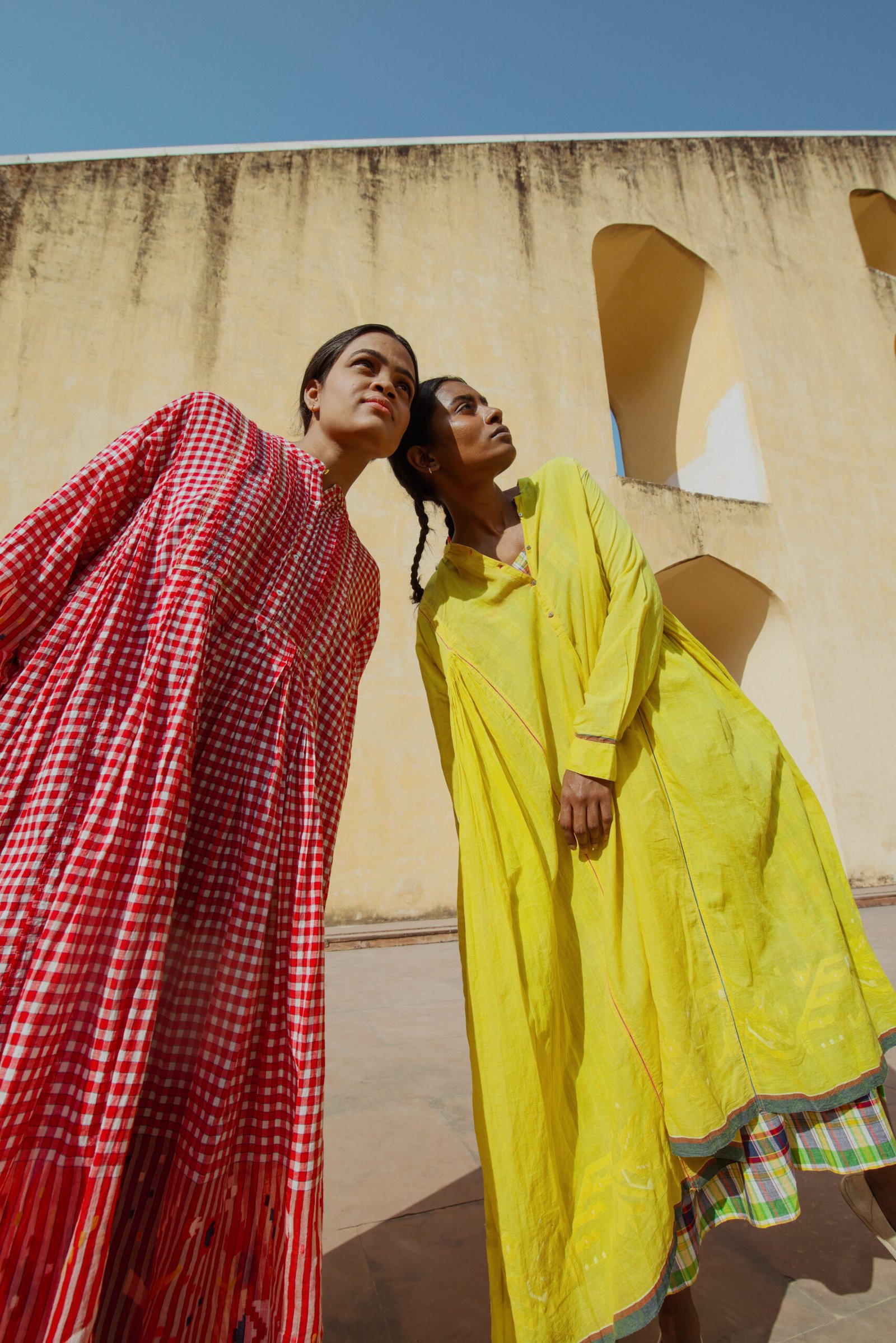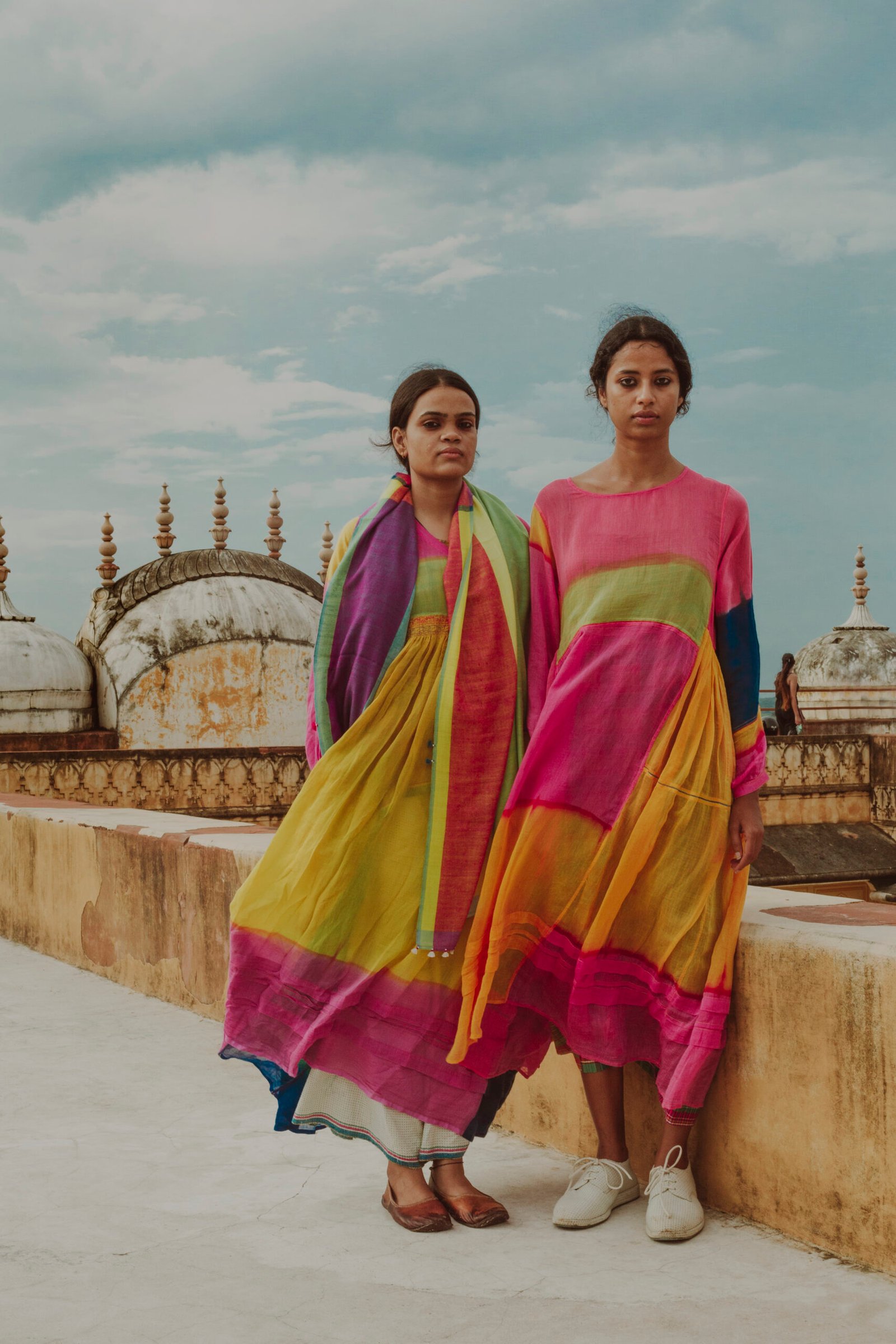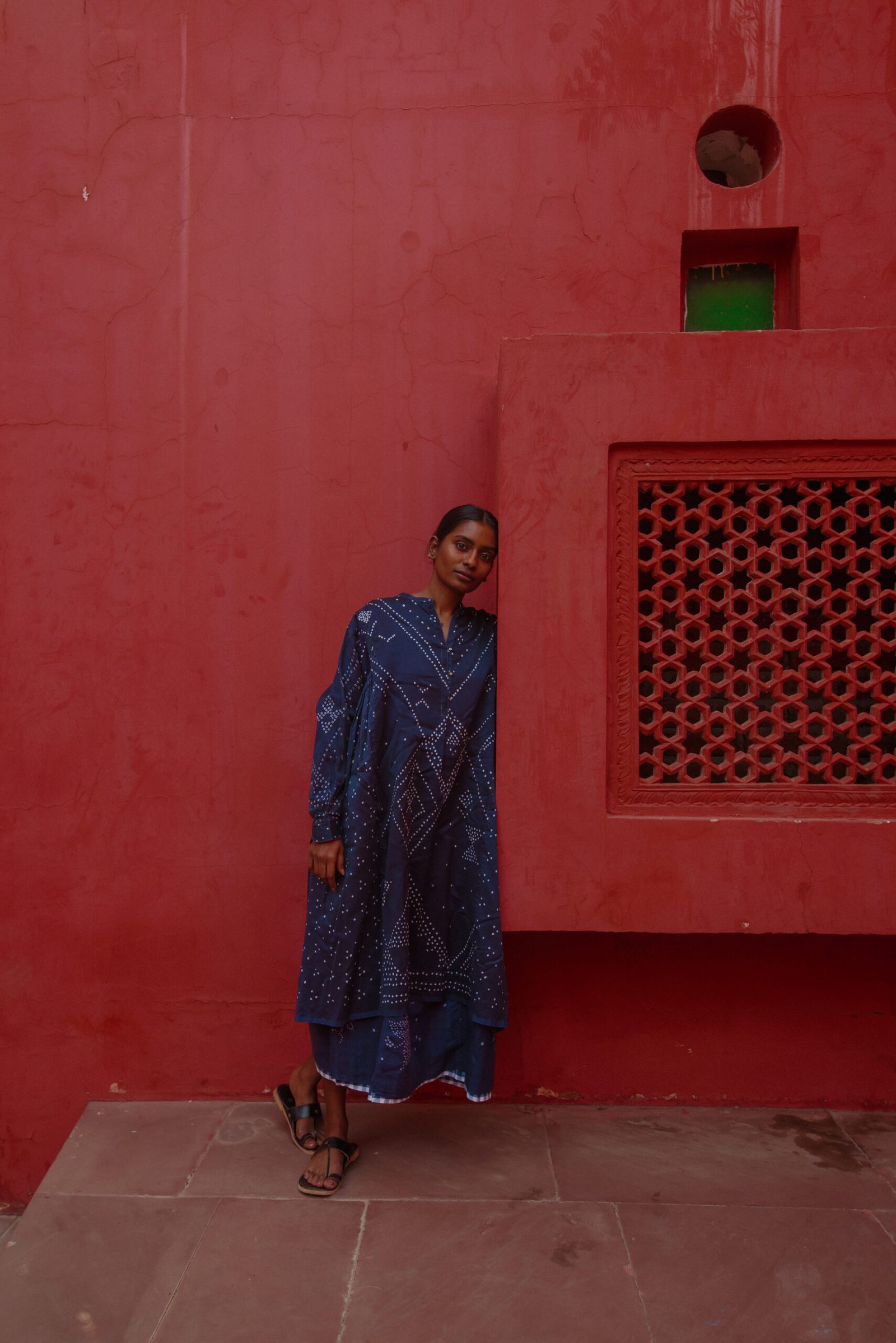 The Fall winter Shekhawati collection is influenced by colours and visual aesthetics of Rajasthan where Chinar has grown up. The name of the collection is called Shekhawati which is an area of Rajasthan with rich cultural heritage. The region is known for it’s beautiful architecture and fresco. The collection is also photographed in this area of exceptional beauty and character. The textiles used are woven in Gujarat and Kashmir. Ikkat or tie resist on yarns before weaving has been introduced for the first time in this collection.