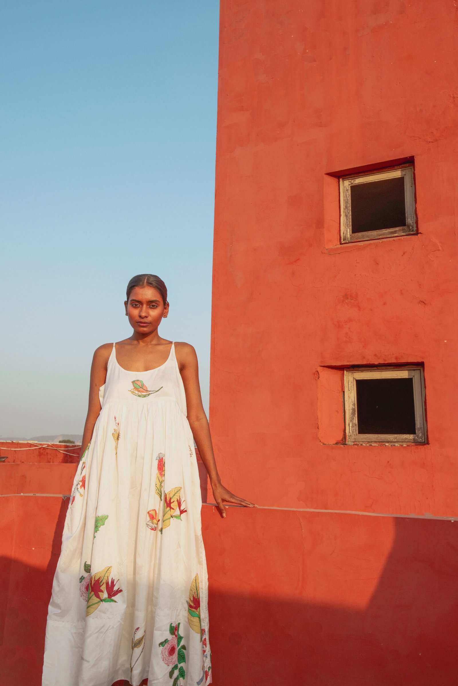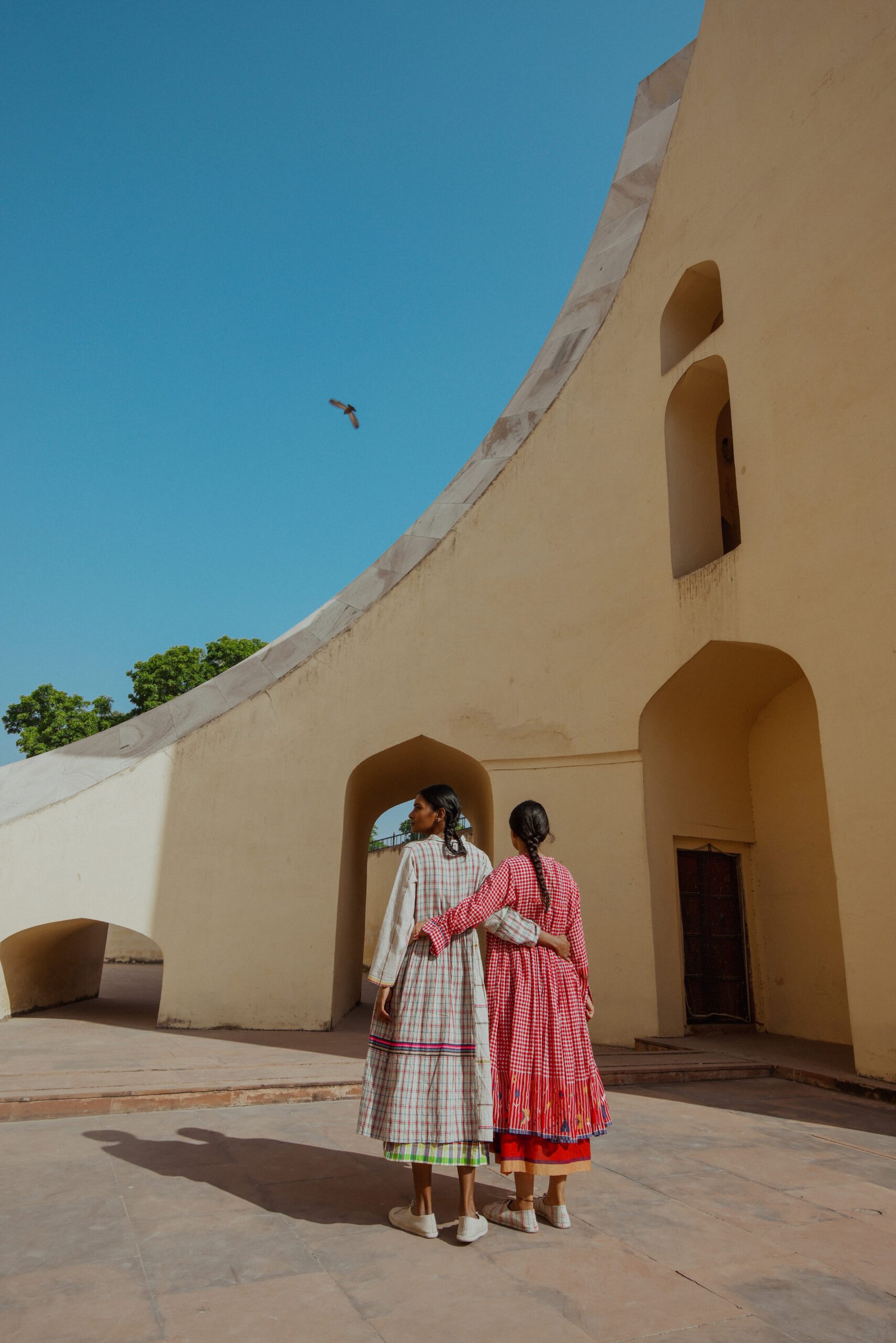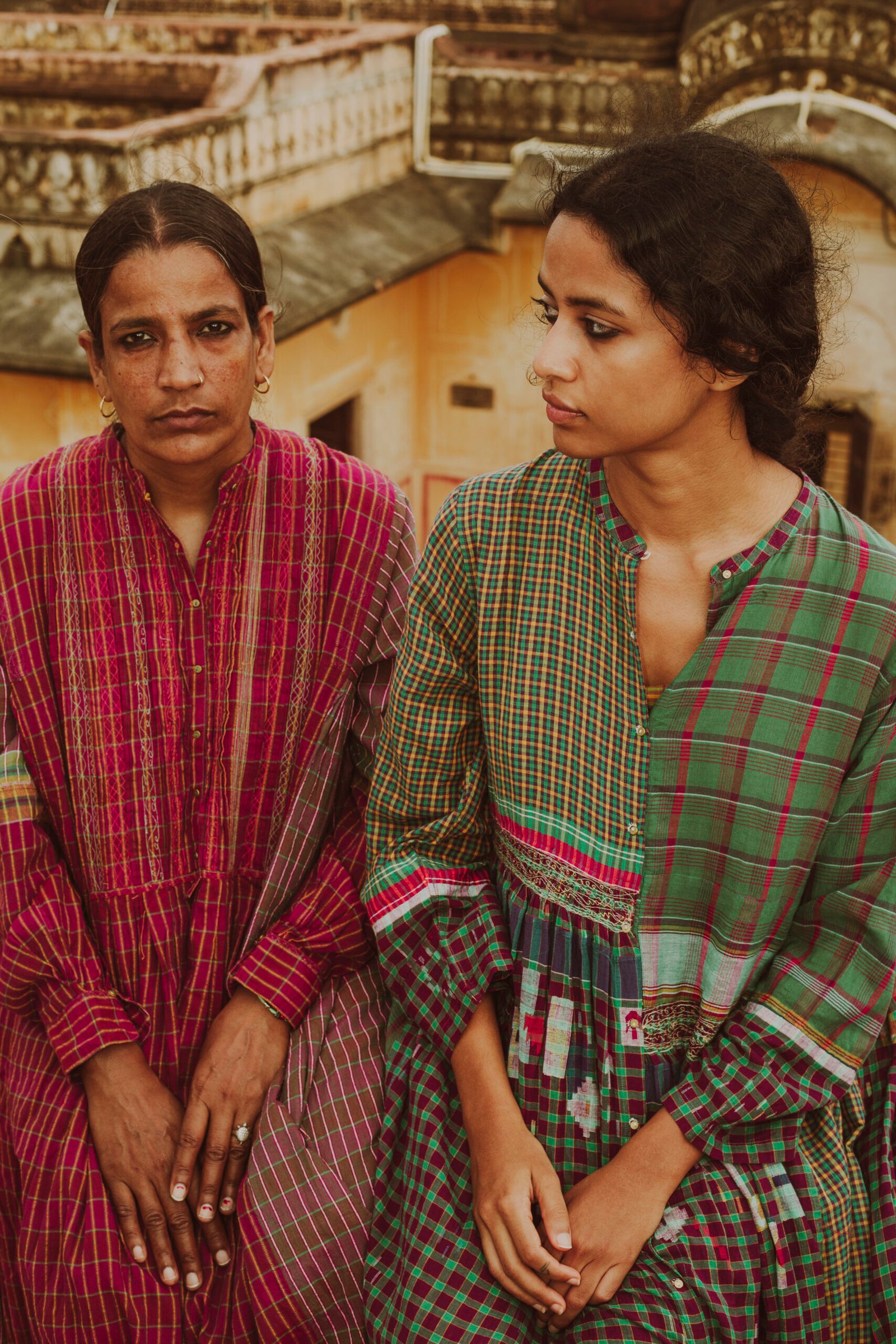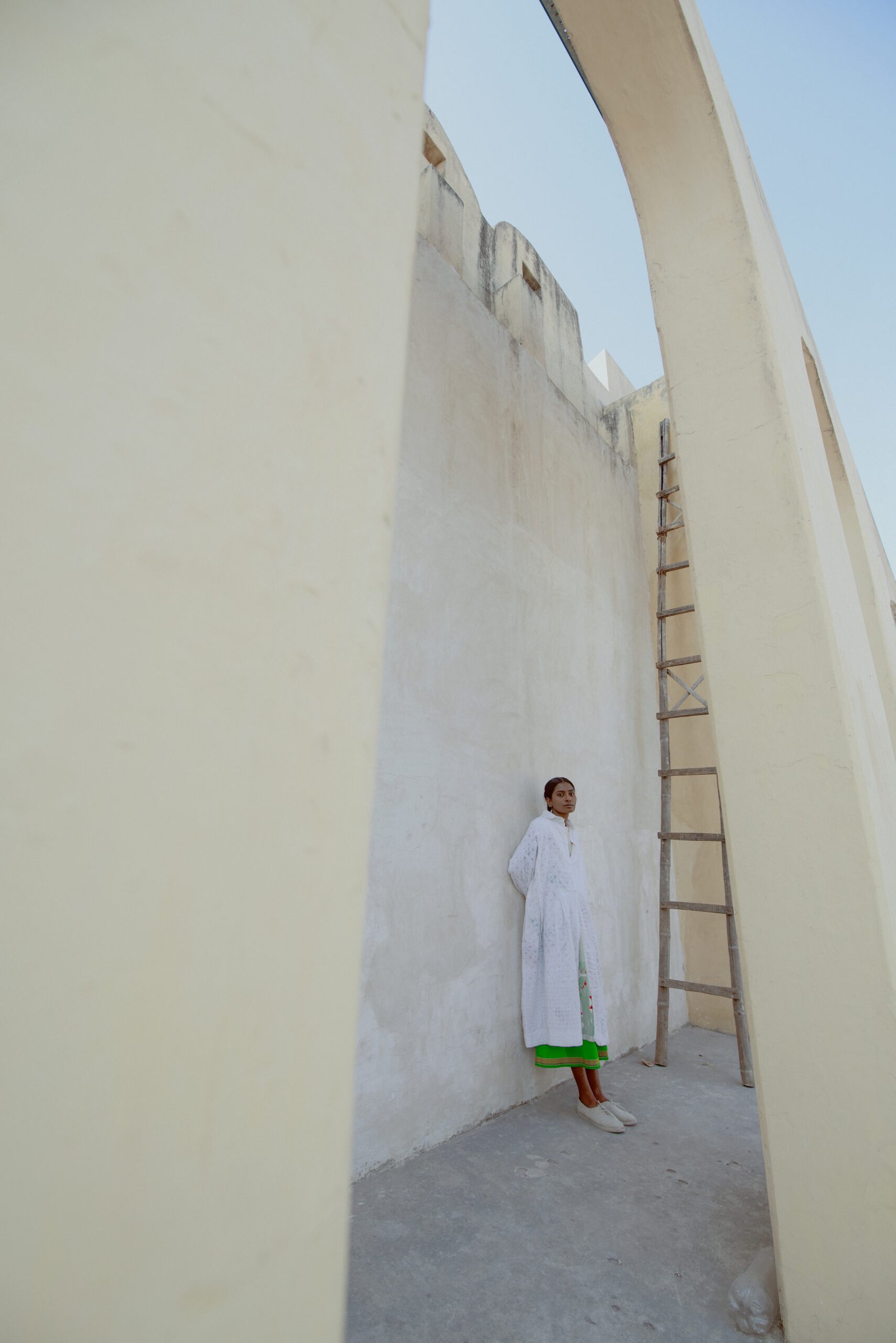 The Fall winter Shekhawati collection is influenced by colours and visual aesthetics of Rajasthan where Chinar has grown up. The name of the collection is called Shekhawati which is an area of Rajasthan with rich cultural heritage. The region is known for it’s beautiful architecture and fresco. The collection is also photographed in this area of exceptional beauty and character. The textiles used are woven in Gujarat and Kashmir. Ikkat or tie resist on yarns before weaving has been introduced for the first time in this collection.